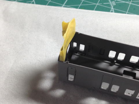 埋まっている窓部分をプラ板で埋めていきます。 |